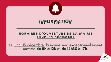 INFO / Horaires de la mairie 15 décembre 🏛️