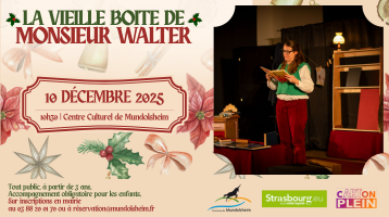 📅 Mercredi 10 décembre 2025 ⏰ 10h30 📍 Centre Culturel de Mundolsheim Monsieur Walter était le responsable de la bibliothèque du village depuis des années. Aujourd’hui, il n’est plus là. C’est Bérénice, une nouvelle bibliothécaire débutante, qui le remplace. Elle cherche encore ses repères (un peu) et ses clés (souvent). Pour Noël, elle découvre par […]
